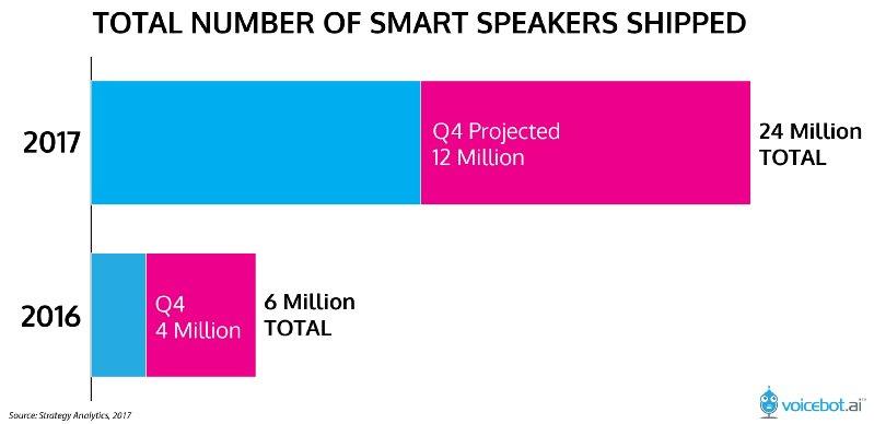 2017年智能音箱出货量 - 数据源自Strategy Analytics