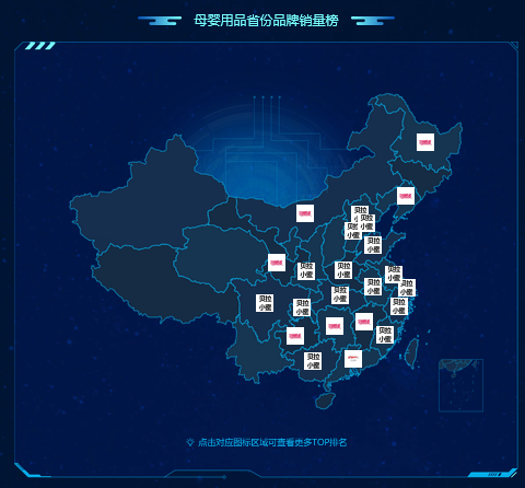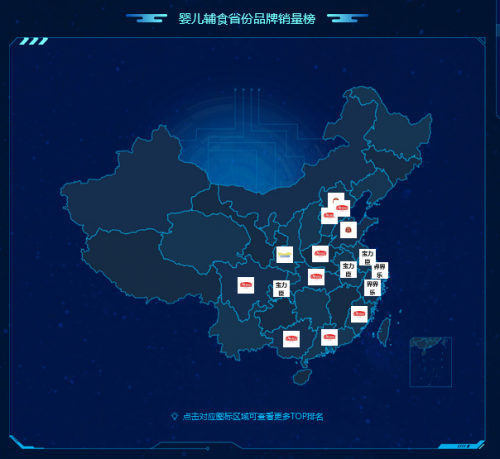 在婴儿辅食省份品牌销量排行榜中,全国绝大多数省份几乎都被位居品牌销量榜首的亨氏占领,其次是宝力臣和界界乐。