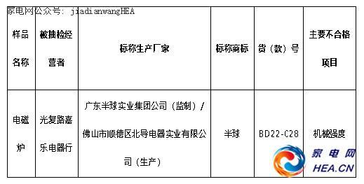 近日,长春市工商行政管理局在市区部分商场、集贸市场等经营场所,对小家电类商品开展了商品质量监测,标称为广东半球实业监制佛山市北导电器生产的“半球”的电磁炉被检出机械强度项目不合格。