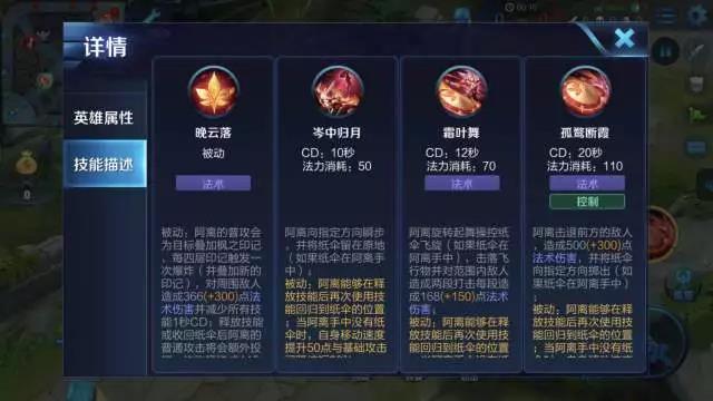 2、一技能进场,平A打伤害和印记,若输出环境较好,则不回到伞的位置,同时开启二技能挡住敌方的关键伤害(例如诸葛亮大招,干将莫邪的剑等),再看情况决定大招的用法。