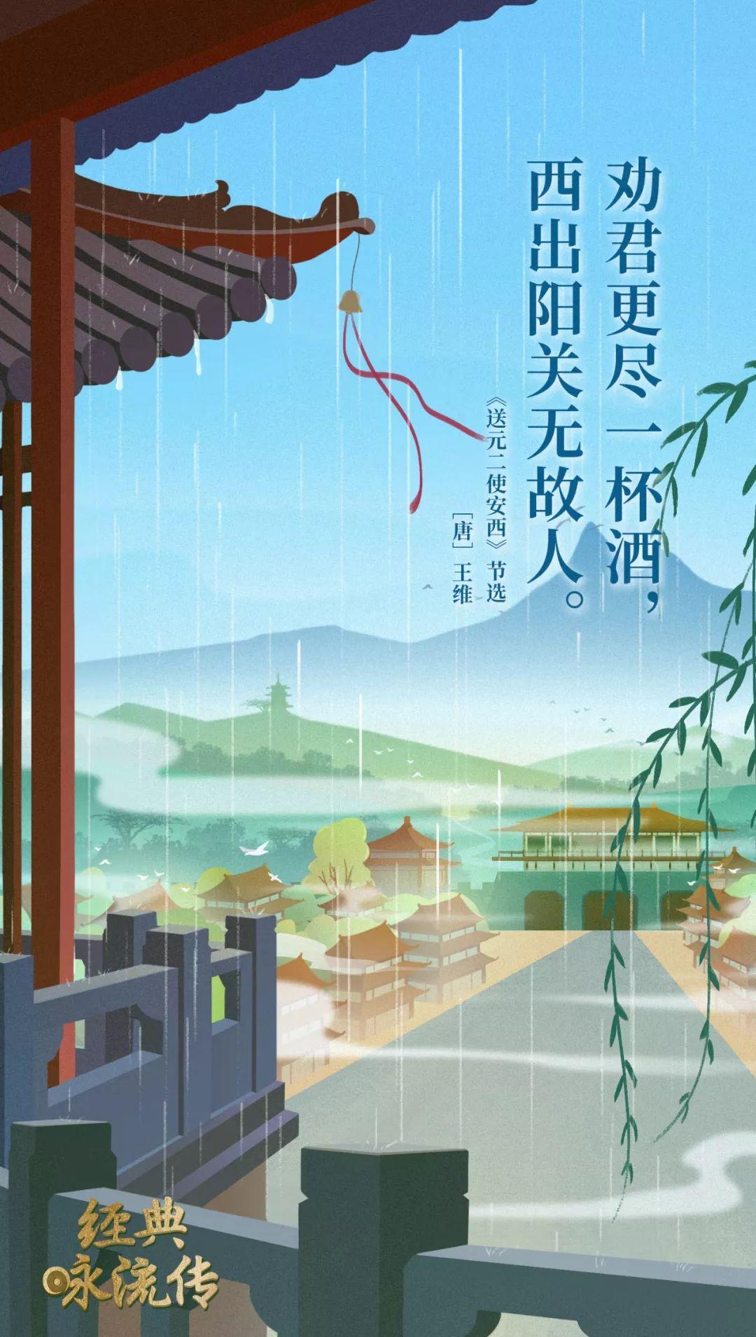 渭城朝雨浥轻尘,客舍青青柳色新。