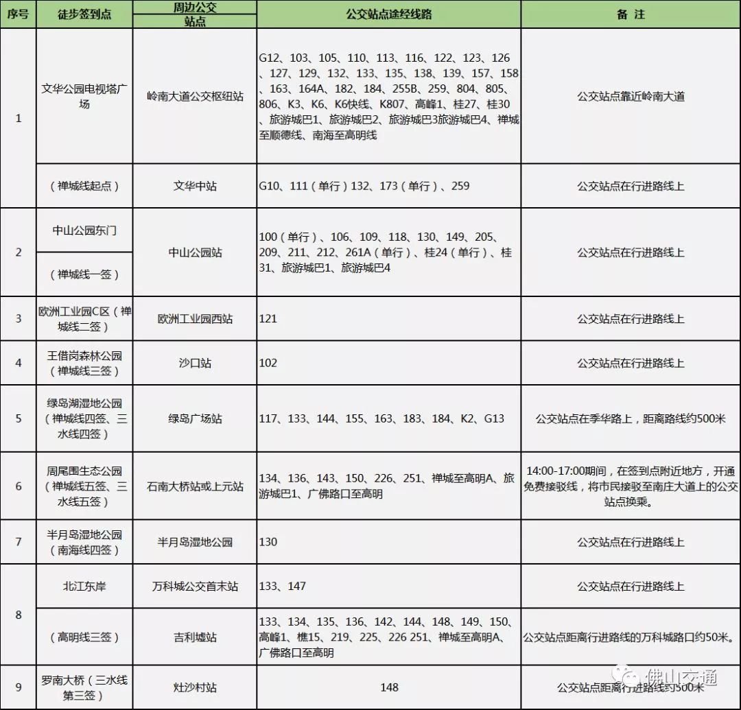 徒步期间,将对沿途部分路段实施交通管制。终点站世纪莲东门路段、西门路段,以及新闻中心红绿灯路段,均禁止车辆停放,前往车辆可在地下停车场、西门停车场或中欧中心停放。同时,禁止车辆从碧桂花城东门、西门转入佛陈桥底方向行驶。