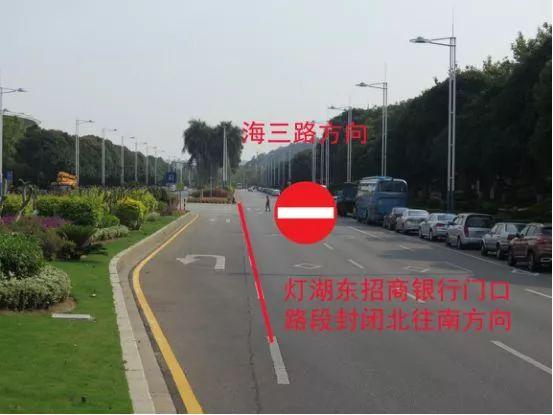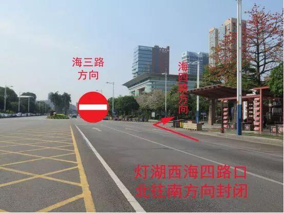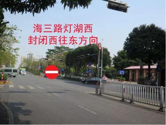 11、灯湖西路海四路口北往南方向封闭,禁止车辆直行往海三路。