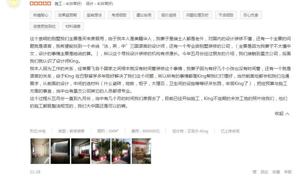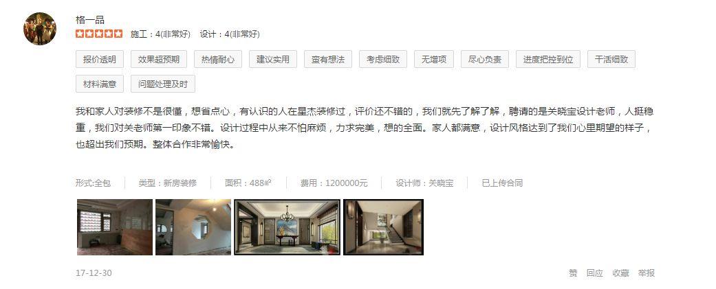 业主说:前期看了很多家,最终选择了星杰,主要考虑大公司的规范透明……↓
