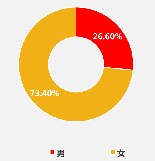 根据最高人民法院离婚纠纷司法大数据专题报告数据显示,在全国离婚纠纷一审审结案件中,73.40%的案件原告的性别为女性。