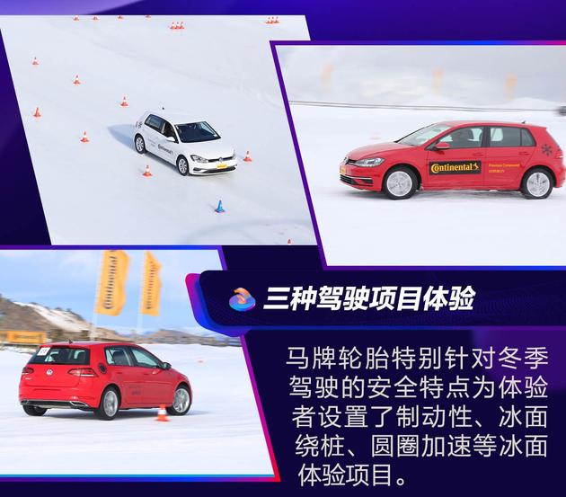由于冬季温度下降导致路面积雪或结冰,普通的轮胎会失去抓地力,而这次活动的轮胎除体验的竞品外,大部分为马牌ContiVikingContact6(CVC6)冬季轮胎。下面正式开始项目体验。