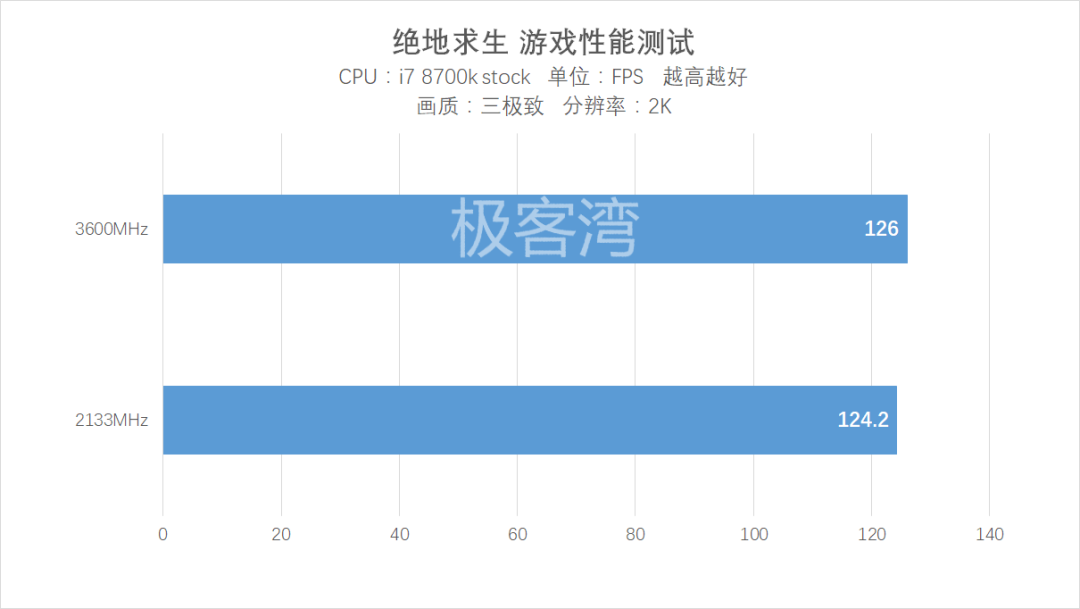 游戏性能测试也依然说明了在双通道的情况下,内存频率并没有对游戏性能有致命的影响。