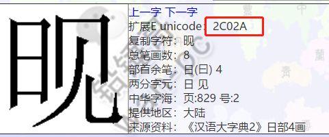 打开Windows系统的 写字板 或者Word(WPS不行),输入“2C02A”(不含引号),按下Alt+X组合键,这个“⿰日见”就蹦出来了。