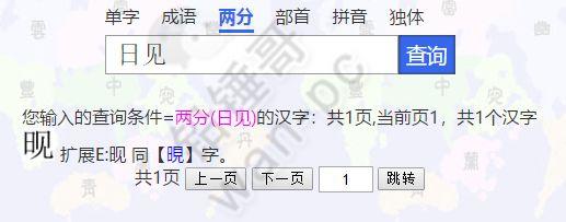 铅锤哥这里选择“两分”法查询,框内输入“日见”,即可找到“⿰日见”这个字。