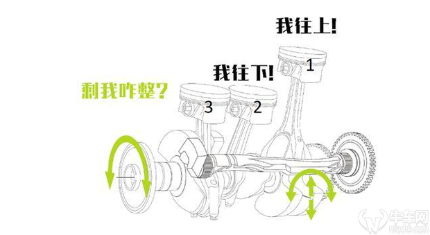 为啥三缸机会有抖呢?其实对于所有发动机而言,抖动都是必然存在的,只不过是抖动幅度的大小问题,对4缸,6缸等这样的双数缸型来说,可以通过不同活塞的对向运动来相互抵消,所以表现出来的震动很大一部分都已经相互抵消掉了。