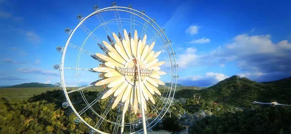 游客们更可以乘坐矗立于山巅的巨型摩天轮,“一览众山小”。届时在其周围,几百种、过万只的各种鸟类将游客请入宛如天堂的超级天幕之下,各种设施和设备将承载游客360度的游乐热情。