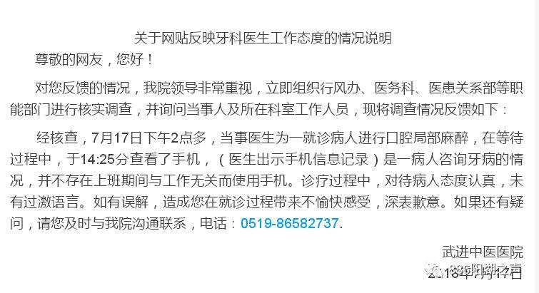 武进中医院在第一时间进行调查