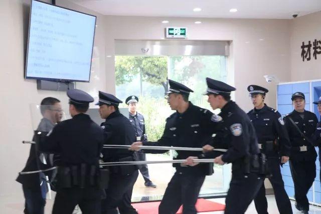 图为法警队正在进行紧急事故安全演练