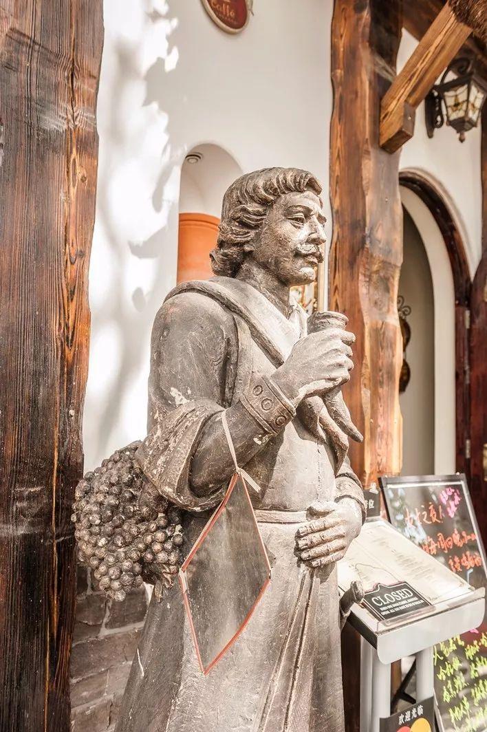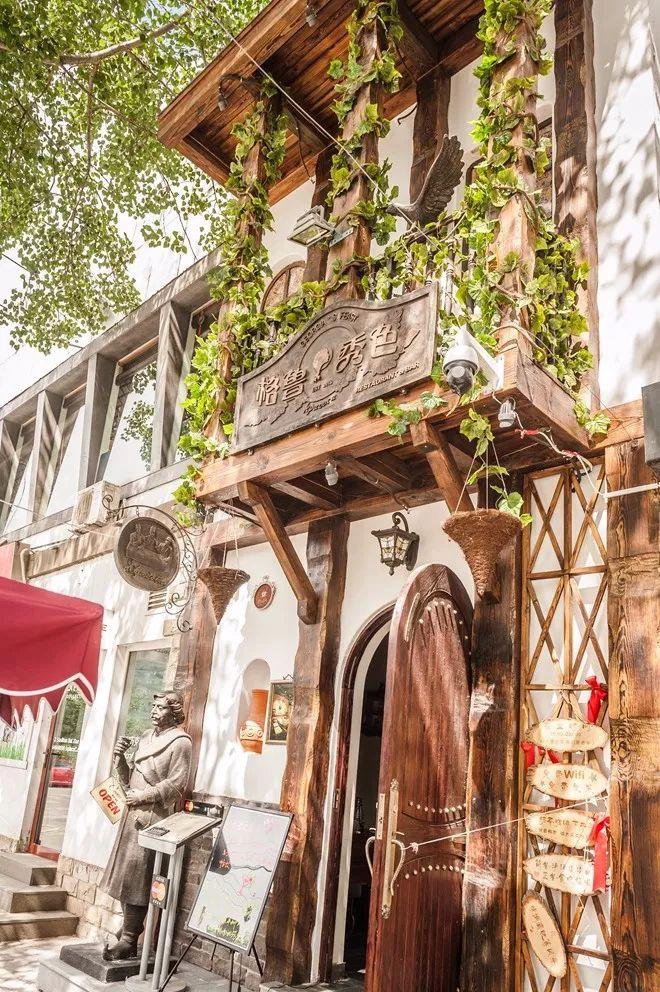 格鲁秀色位于三里屯北小街,地处亮马河南岸。外观是一栋白色的欧式小洋楼,二楼是明亮的落地飘窗,小巧精致的阳台爬满常春藤。深古铜色的高大松木矗立两旁,一位穿着格鲁吉亚传统服饰手拿杯盏的铜像作为路引,做工考究的金属铆钉的木门开启一段格鲁吉亚美食美酒之旅。