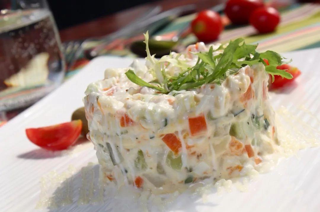 作为格鲁秀色西餐厅的经典菜色之一,在此之前,这道沙拉就早已名声赫赫。无论从外观还是口感,整盘沙拉都好评如潮。沙拉中主要以玉米,黄瓜,酸黄瓜,胡萝卜为主,一口下去异常美味,是一道苏醒味蕾的好菜。