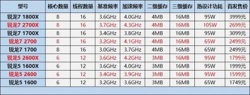 AMD锐龙二代CPU规格对比