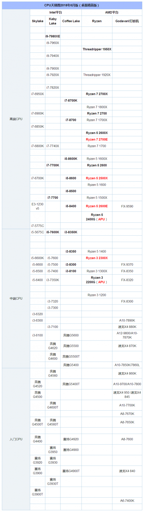 CPU天梯图2018年6月版(桌面精简版)