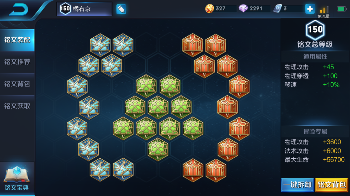 铭文解析:这套铭文携带的是隐匿百穿铭文,主要是用来提高橘右京的前期伤害。蓝色之所以没有选择狩猎,是因为攻速对橘右京并不是很重要,而橘右京是一个靠技能打伤害的英雄,只需要带移速就可以了,便于橘右京的游走支援。橘右京前期伤害是很高的,搭配上这样的铭文,前期会有一个很恐怖的伤害。
