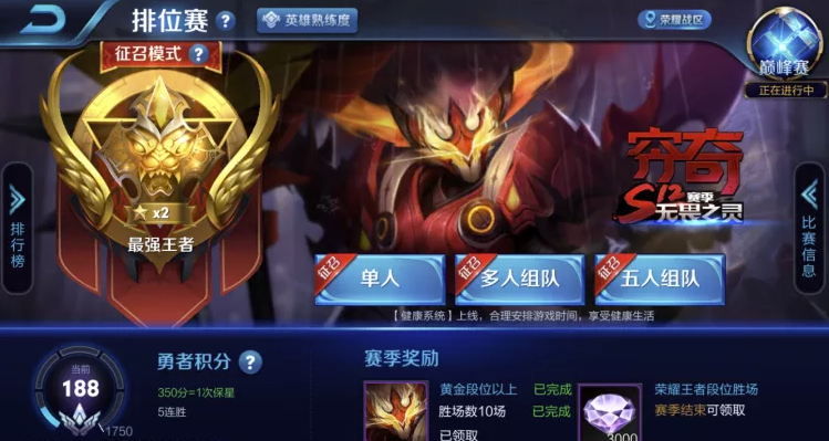 这赛季总共打四个号,目前2个王者 一个星耀1 一个星耀3.