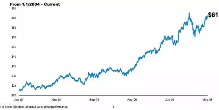 2005~2008 年的股价上涨,其实就是资本市场发现麦当劳的核心是个地产+品牌公司,通过反复的沟通和各种替代性的资本/业务操作方案,逐步调整估值逻辑的过程。