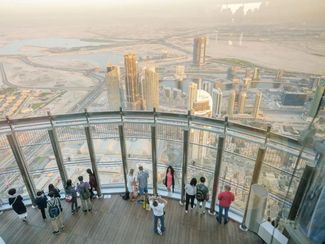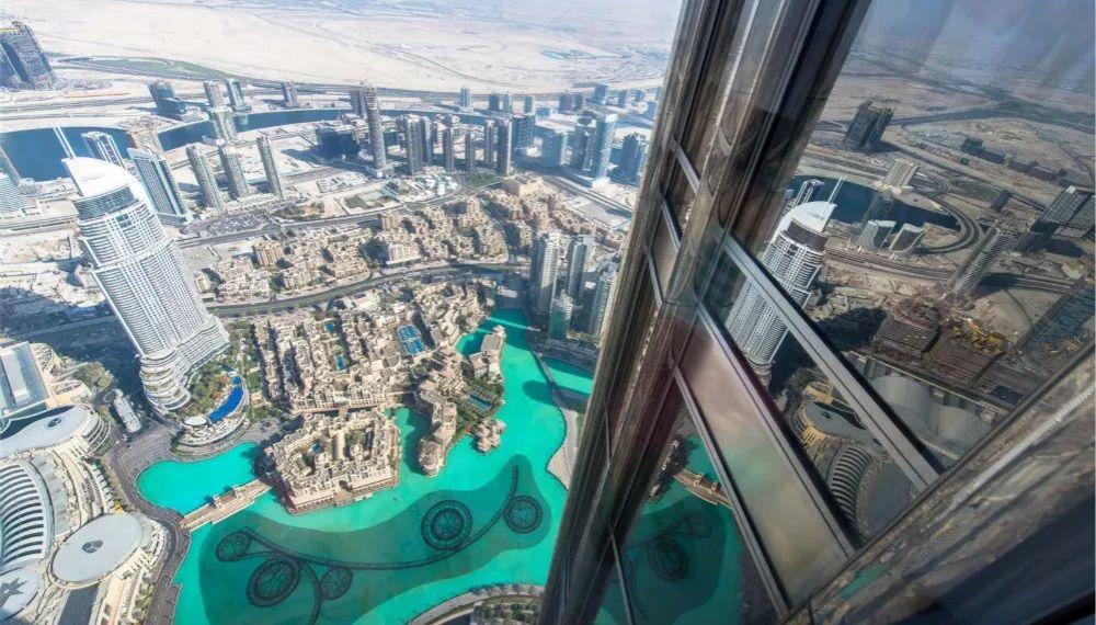 此刻我正站在哈利法塔的124层上,环绕的玻璃幕墙能让人在这里基本看到迪拜的全貌。这是座名副其实的沙漠城市。炎热气温下,尽管也濒临海边,但蔚蓝的海面并没有带来很高的能见度。