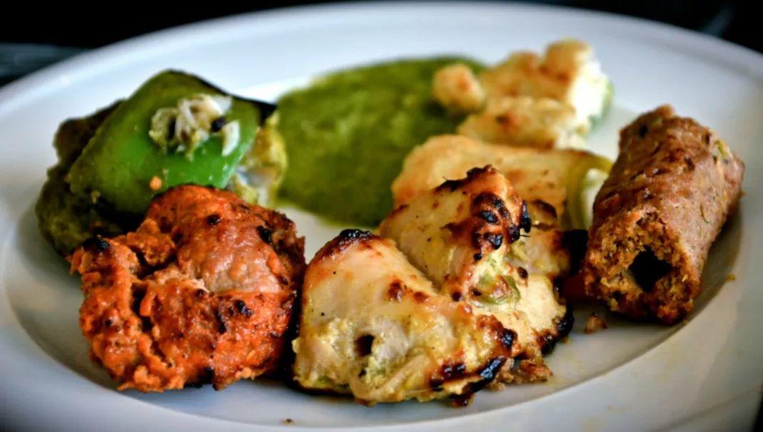 笼统地说,Kebab是烤肉,这些用串烤出来的腌制过的肉块是阿拉伯和印巴人的传统食物,是Tikka则是用酱汁泡过的烤肉。