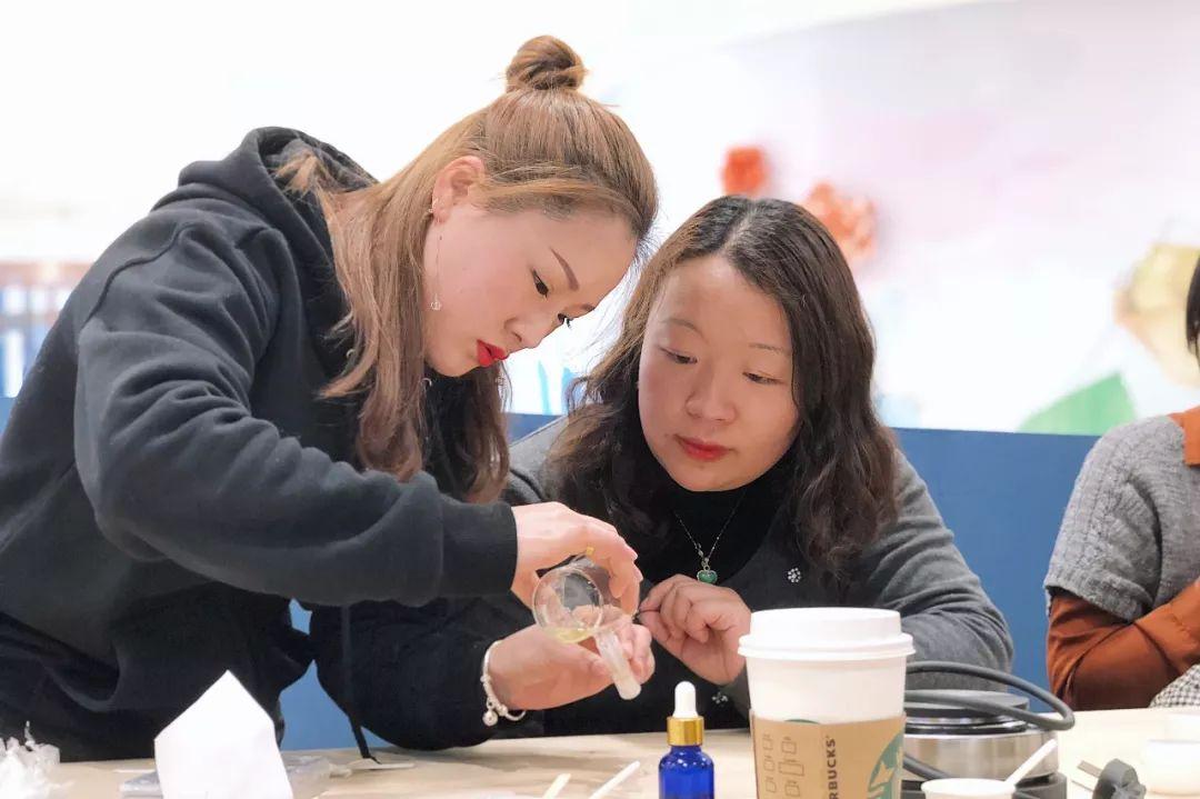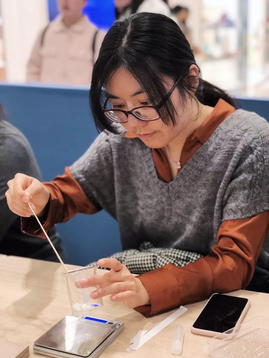 “老师,这个杏仁油要放3.5克还是1.5克?”,“润唇膏需要等待多久才能凝固?”七嘴八舌的讨论让这儿真的像自家会客厅一样亲切舒适。