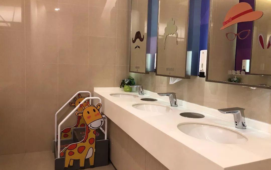 走到厕所小申还发现了专属小朋友的洗手用小楼梯,这样妈妈们就不用抱着宝贝在水池边洗手了。