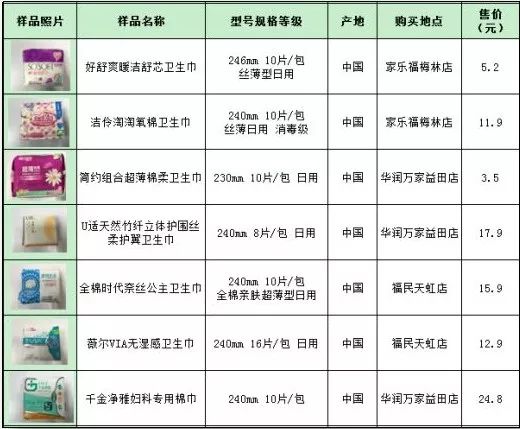 共35款卫生巾品牌!