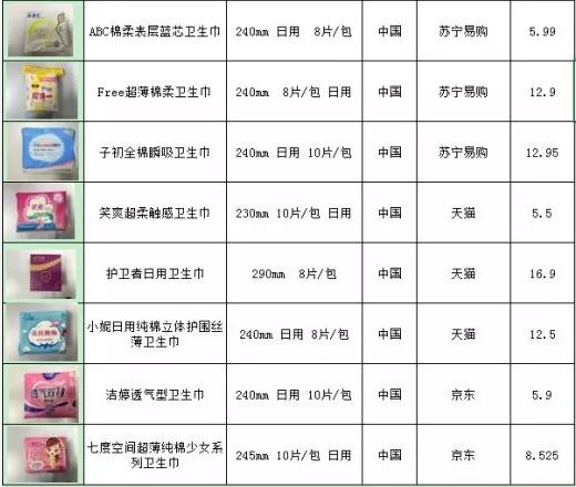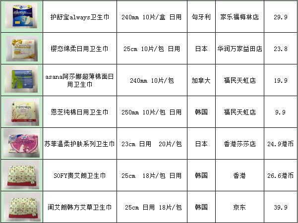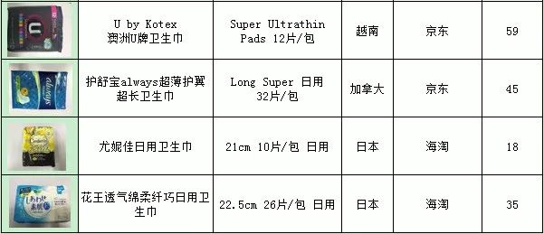 选购了国内外35款热门卫生巾,