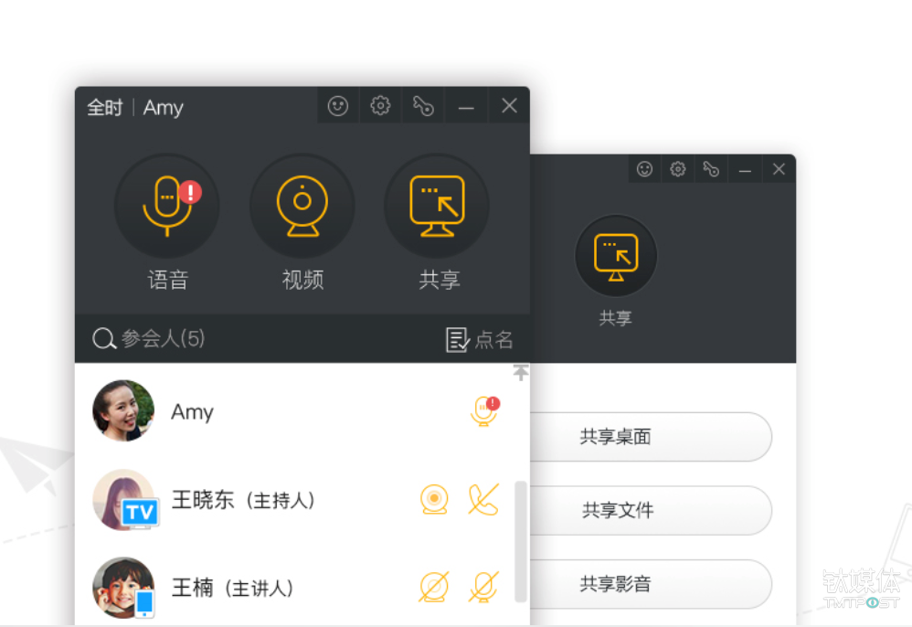 在优先保证了语音通话的基础上,系统才会调度出资源支持视频图像和数据共享(如远程桌面)。在数据共享和视频图像之间,全时的优化原则是基于高效会议的原理,即桌面共享的优先级要比视频高。