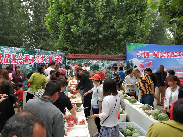 2018年6月9日,由郑州市西瓜甜瓜产业技术体系、郑州市休闲农业观光协会主办的"郑州第一届珍品西瓜品鉴会及采摘线路推介活动"在郑州市中牟县韩寺镇大洪村举行。"全国西瓜种植中,河南的生产规模最大!河南培育的优良西瓜品种在生产中是最多的。”会上,中国园艺学会西甜瓜专业委员会秘书长马跃见到记者,连说了几个"最"字。