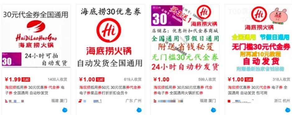海底捞30元代金券:海底捞目前没有50元,只有30元的代金券,你在淘宝上搜索“海底捞代金券”就能看到,这个代金券没有价格限制,但是买单时间必须在下午3:00-5:30,23:00-11:00这个时间段可以使用。