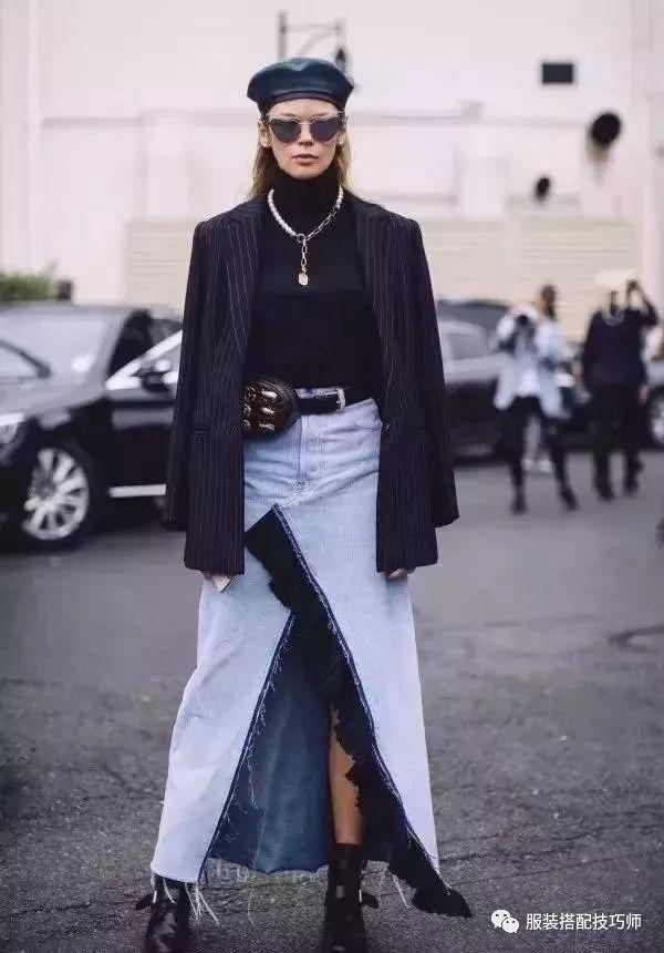 35、仙女裙搭配酷酷的外套,达到娘man平衡。▼