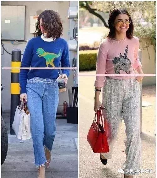 47、短款上衣+高腰裤会拉长腿,视觉上显高十公分。▼