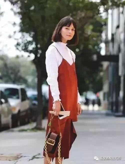37、只要一件长袖内搭,保守的妹子们也可以穿低胸吊带裙啦。▼