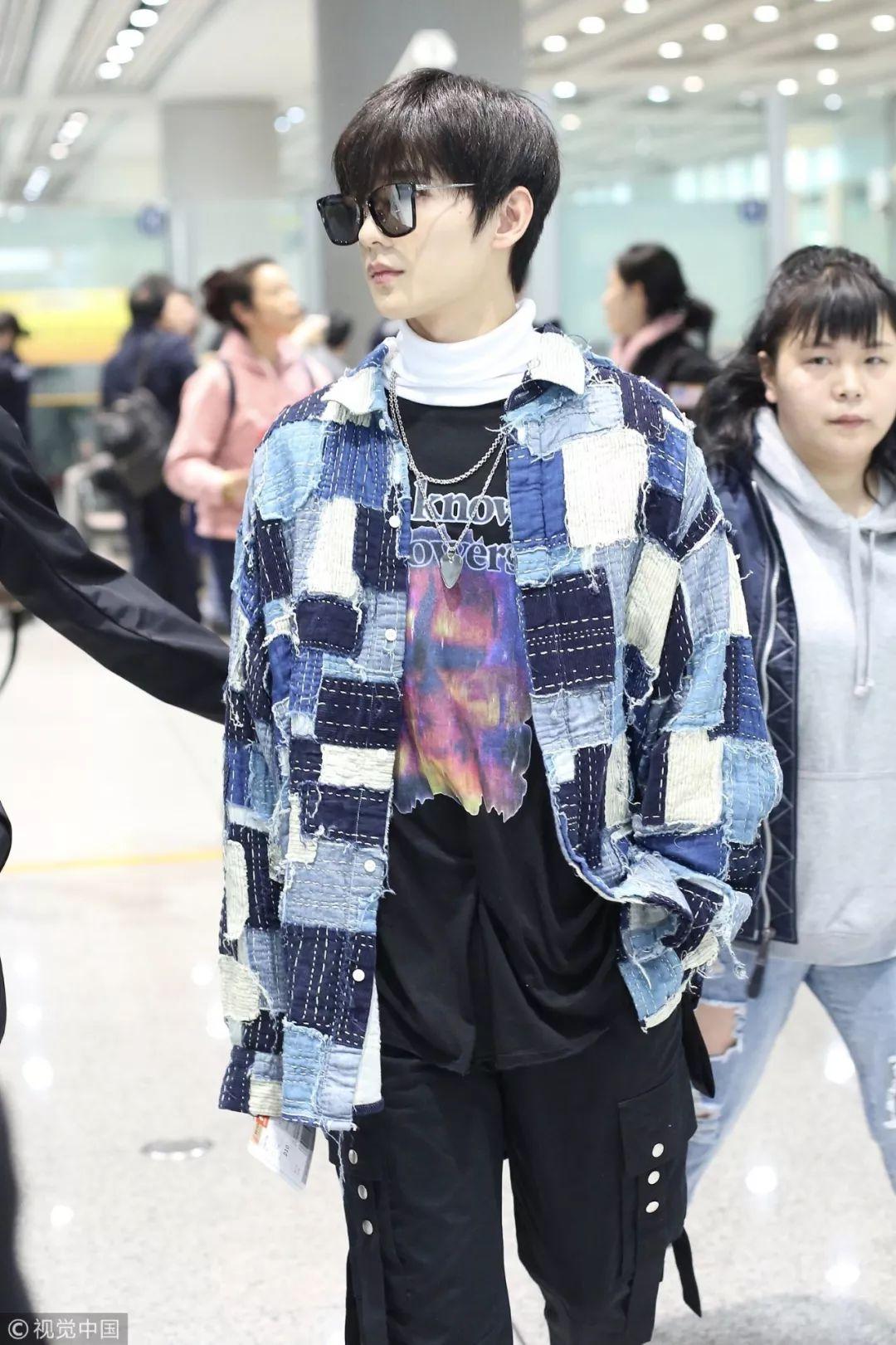 而这身同样适合男生。王源用Givenchy深蓝色水洗牛仔裤装内搭Givenchy 2018春夏系列黑色水洗牛仔衬衫和T恤,小源穿起来就是诠释青春活力和经典元素的碰撞。