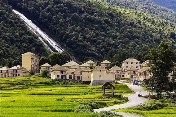 与标水岩瀑布仅仅一步之遥的风景,就是标水岩村。标水岩的太阳比鸟儿起的还早。勤劳的太阳用嫩绿色,从五台山顶一坡的涂下来。一不小心,就碰到了山腰林中的寨子和满寨子的亲戚朋友。进了寨子的阳光,在蘑菇房上与袅袅的炊烟亲切交谈。动情处,炊烟好像乱了方寸,上升的步子更加婀娜。生长在汪汪水田边的那朵朵蘑菇房的墙壁,被阳光悄悄的涂成了嫩黄色。柴栅“咕”地开了,一群白羽鸭子昂首扇翅,嘎嘎的夺出门,扑入田水中。一个穿着藏青色服饰,头戴三角黑帕的少妇,左手掖了一只筲箕,筲箕中盛了嫩绿的苤菜,右手持了一根小竹竿亮出门来。阳光在她的脸上闪动出一个笑靥……一个背着大书包的少年,迎着太阳出门。手里摊着一坨用绿色芭蕉叶包着的黄色糯米饭团,掰了一小坨放进嘴巴,嚼着,朝了村头飘着的五星红旗而去……