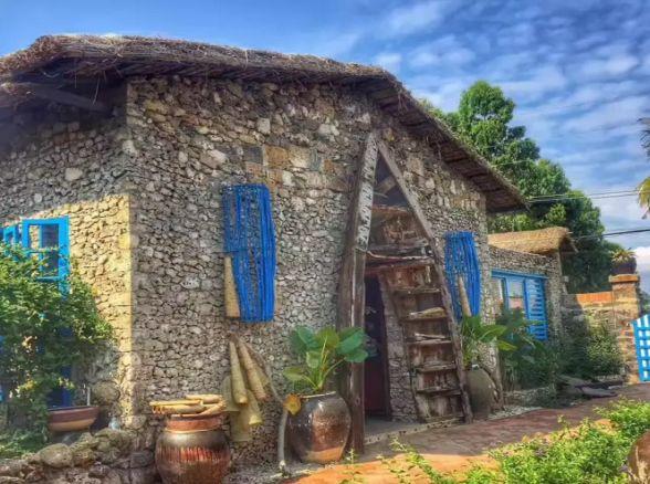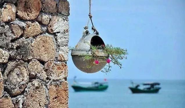 既然说到了珊瑚,就不得不提下当地的奇葩建筑——会唱歌会呼吸的珊瑚屋。由于珊瑚石表面分布着细细密密的空隙,因此造就了珊瑚屋冬暖夏凉的特性。而海风吹过,有如洞箫一般产生惟妙惟肖的音律。试想一下,在凉风习习的夜晚,听着大海讲诉着遥远的故事,是不是别有一番风味呢。小院不缺风,去年六七月最热的时候,海边的一排大风车将南海远远赶来的风吹进了她的院子。风从树叶间,从珊瑚墙的缝隙里涌了进来,好像还颇有节奏和乐感,所以她把村子里的珊瑚屋当成了乡间民谣的歌者,说它们是会唱歌的房子。