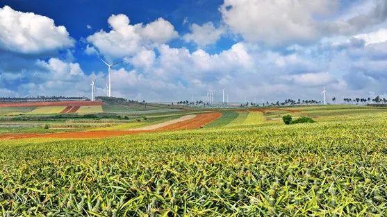 在徐闻,其东部田园种植的茶叶、菠萝、甘蔗、香蕉、桉树像是绘在纸上的“五线谱”,一阵风吹来,绿浪翻滚,像跳动的音符,弹奏着悦耳的音乐。