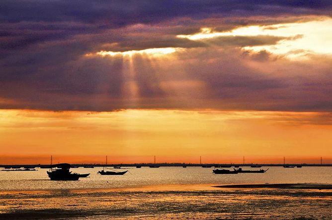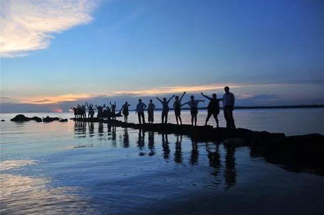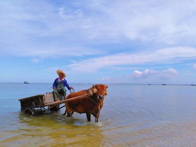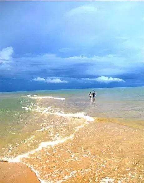 除了密集的人文史迹以外,灯楼角这片“陆极”之地上还有丰富的自然资源景观。中国好望角、海上中英街之称的合水线,足够让您一浪享受南海的壮阔和北部湾的柔情。合水线,顾名思义,两个大海的交汇处。面朝大海,左边是南海,右边是北部湾。由于不同的洋流、潮汐作用,两个海域的海水不断拍打交织冲击处一堆泥沙。在退潮时,一条黄色的沙坝展露无遗。蜿蜿蜒蜒像一只牛角伸向海的中央。光着脚丫子踩在沙坝上,一脚凉、一脚暖是不是很神奇。因为北部湾的水温常年控制在18°左右,比起南海的水温略微清凉,才造就了这样奇特的体验。在合水线前拍一张合影是非常由必要的,这意味着您和家人将和和美美、团团圆圆、幸幸福福。