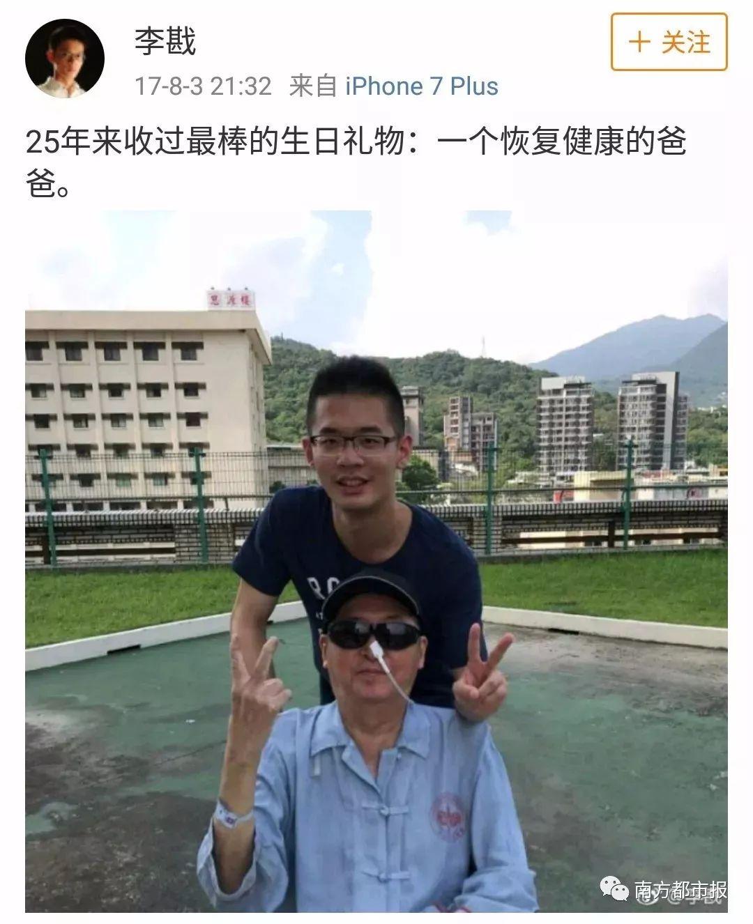 李敖之子李戡也曾在微博谈及父亲身体状况。