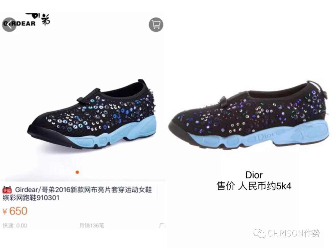 大表姐可能怎么也没想到一不小心穿到了天朝的哥弟同款。另外Gucci、Coach的衣款也是他们抄袭的重点对象,整个女装线就是A货大商场即视感。
