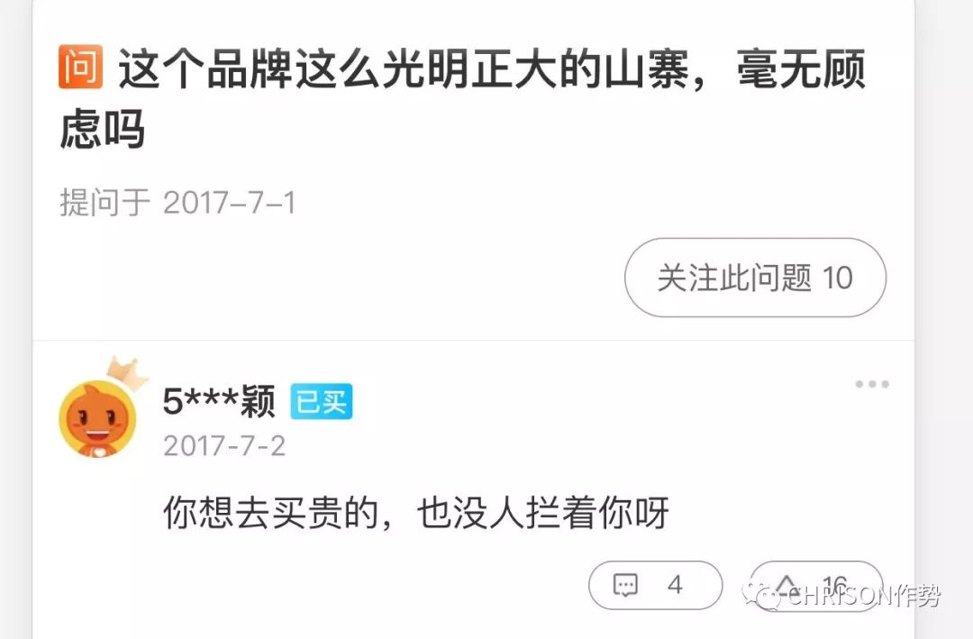 国产名牌公然抄袭让人气愤,部分消费者的态度更令作势君哭笑不得。当有人留言对这种抄袭提出质疑时,有买家们竟说:你想去买贵的,也没人拦着你。