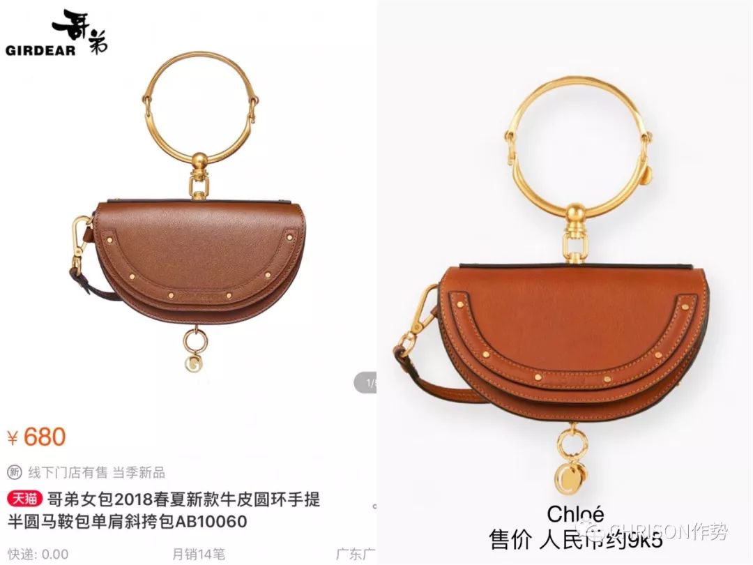 下面这款是不是你也很眼熟?对,它原封不动地抄了Chloé马鞍包,感觉是哥弟直接把Chloé的官网图调了个色拿来用了。