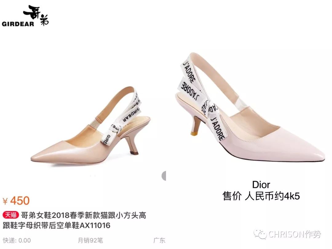 女鞋也是哥弟染指抄袭的重灾区,几乎抄遍了整个大牌时装圈,比如这双绑带Dior高跟鞋....
