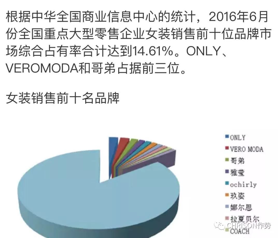 直接上数据,据中国服装网的权威统计,在2016年女装销售女装市场占有率排名之中,哥弟仅次于ONLY和Vera Moda两家Best Seller集团的女装品牌,排名全国第三;甚至把欧时力、拉夏贝尔和雅莹都甩到了身后。