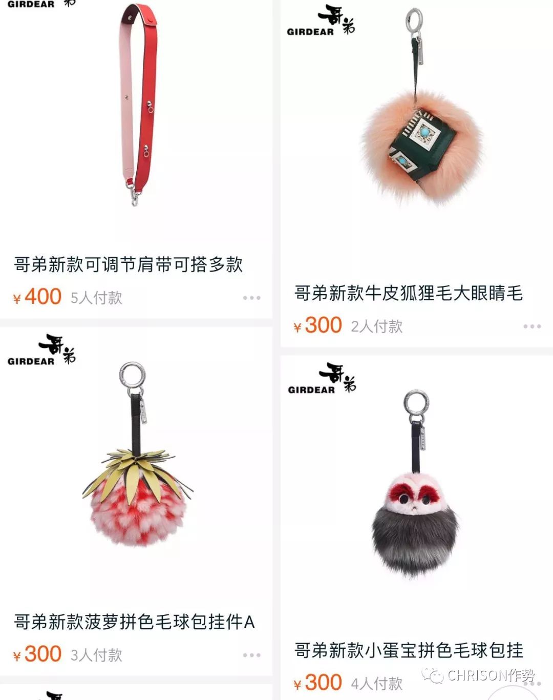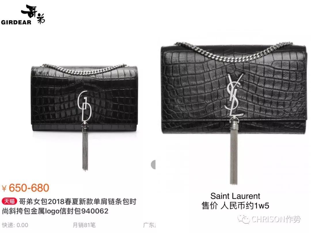 哥弟内部应该流传着一个“欧洲代购热销Top 10”榜单,哪个包代得火,就指着它抄!这个照搬了Saint Laurent的流苏信封包,大胆地把YSL的字样改成了“GD”,不知道的还以为是和权志龙出了联名呢。