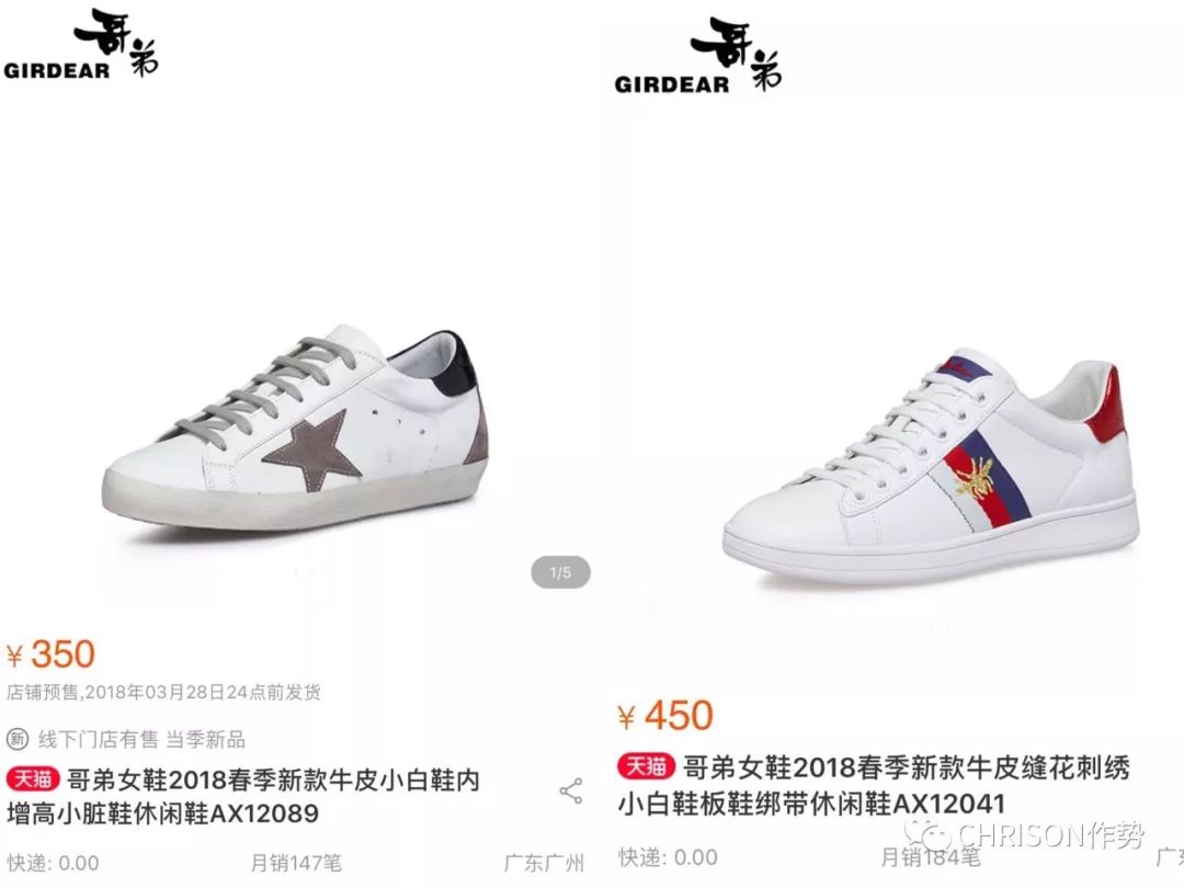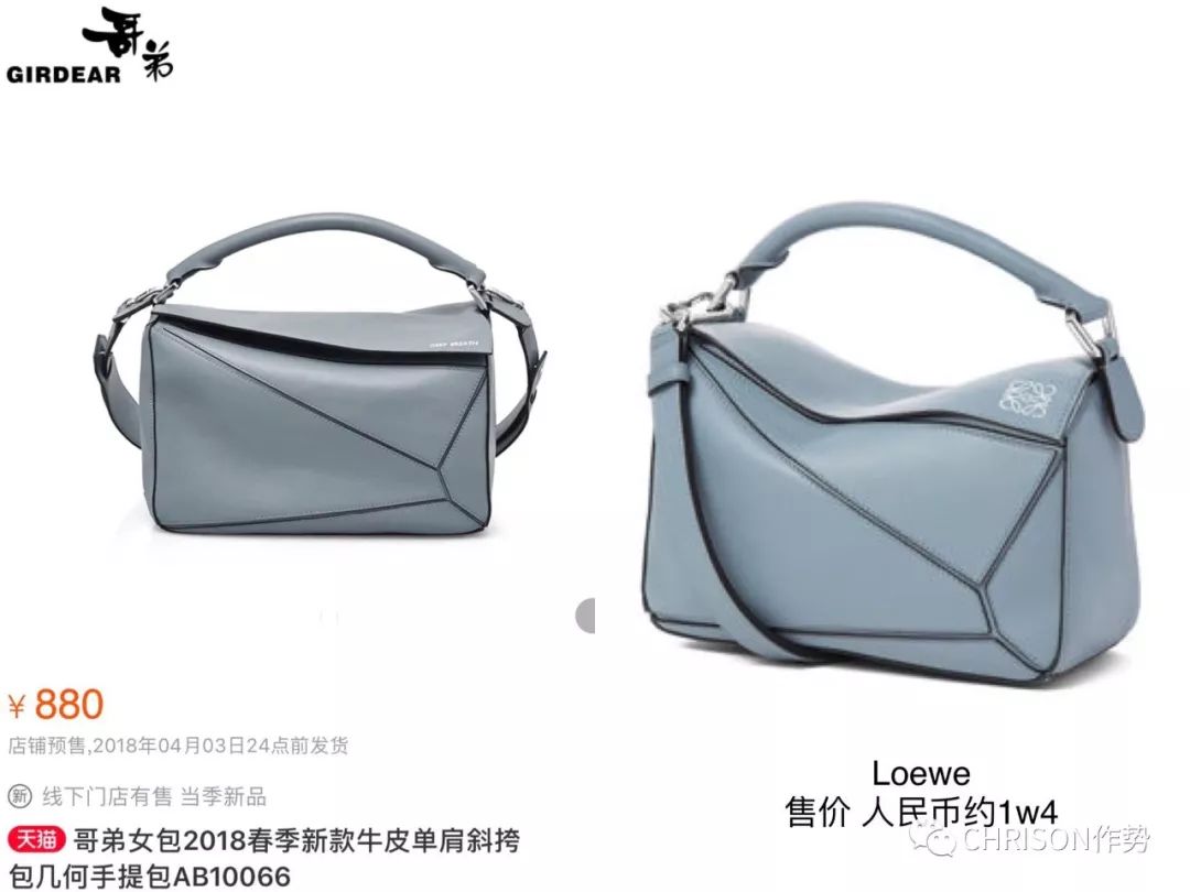 从文章开始的那张拼图里,你甚至不用费神去找,随便在哥弟官网和天猫旗舰店里一翻,就是一水儿的世界大牌抄袭款。
