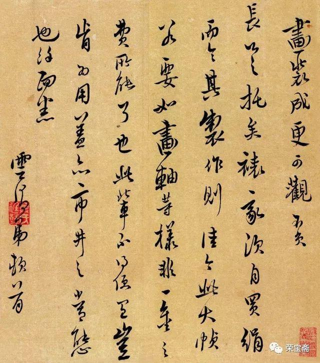 莫是龙书法重在求古,上溯魏晋,宗法“二王”,在其父莫如忠“独宗‘二王’”外,创新求变,兼有宋人意趣,米芾笔意尤为鲜明。《明史·文苑传》称其“善书”。何三畏云:“云卿书法无所不窥,而独宗羲、献,宗米,楷宗锺繇。”李日华也说到:“廷韩书法米颠,亦咄咄逼人。”《艺苑巵言》评价:“是龙小楷精工,过于婉媚,行草豪逸有态。”王穉登在题莫是龙《送春赋》时对其书法也评价甚高:“书法韶令英英,逼人子敬,白练裙中墨,属泽家之季矣。靡靡隃快哉,莫盛璞且耳熟。”《石渠宝笈续编·养心殿三》记载了莫是龙自己对于书法艺术的一番评述:“余生平雅好书画,壮年精力半疲于此,虽未便诸古人,然当其得趣,合撰往往不恶,遂为交游中好事者所赏。”书画艺术作为莫是龙半生的爱好与追求,可以想象“临池数酌,设笔墨摹古帖一二行,援琴而鼓之,神游羲皇矣”,应是其最惬意向往的生活状态了吧。
